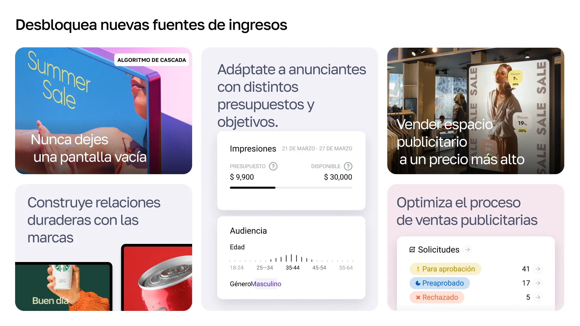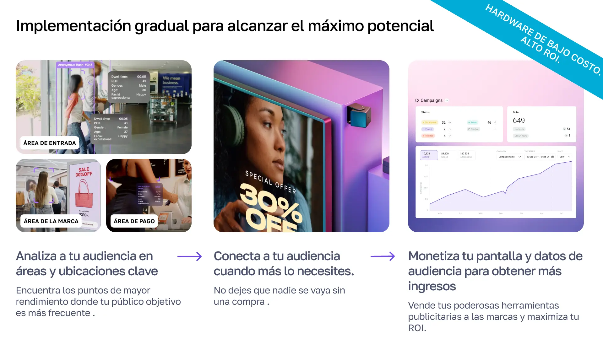 Súmate a nuestra red y ofrece analítica de audiencia + digital signage en una sola plataforma.